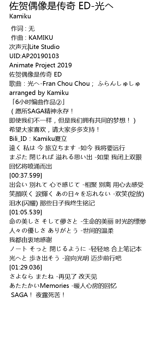 | [00:05.188] | 佐贺偶像是传奇 ED |