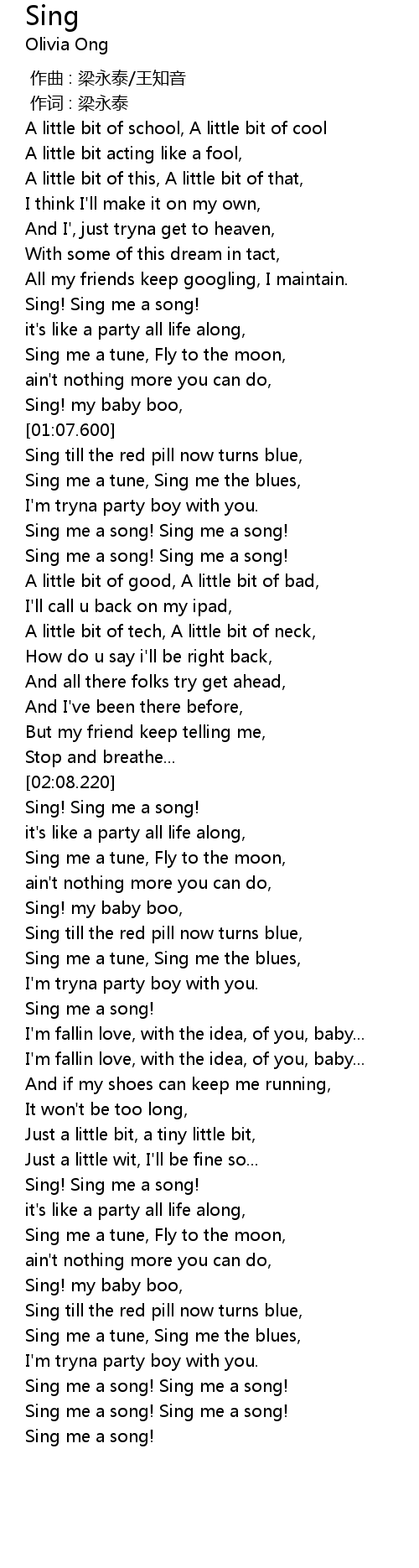 | [02:41.40] | Sing me a song! |