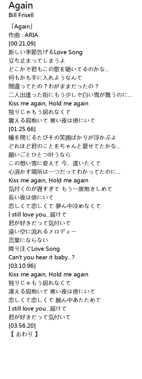 | [02:13.64] | 気付くのが遅すぎて もう一度抱きしめて |