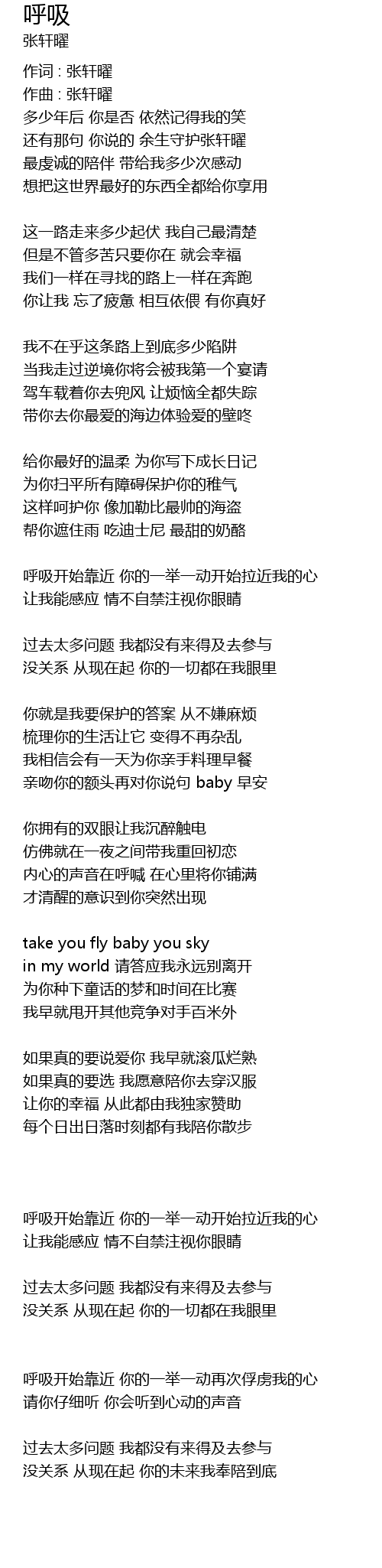 | 作词 : 张轩曜 | |