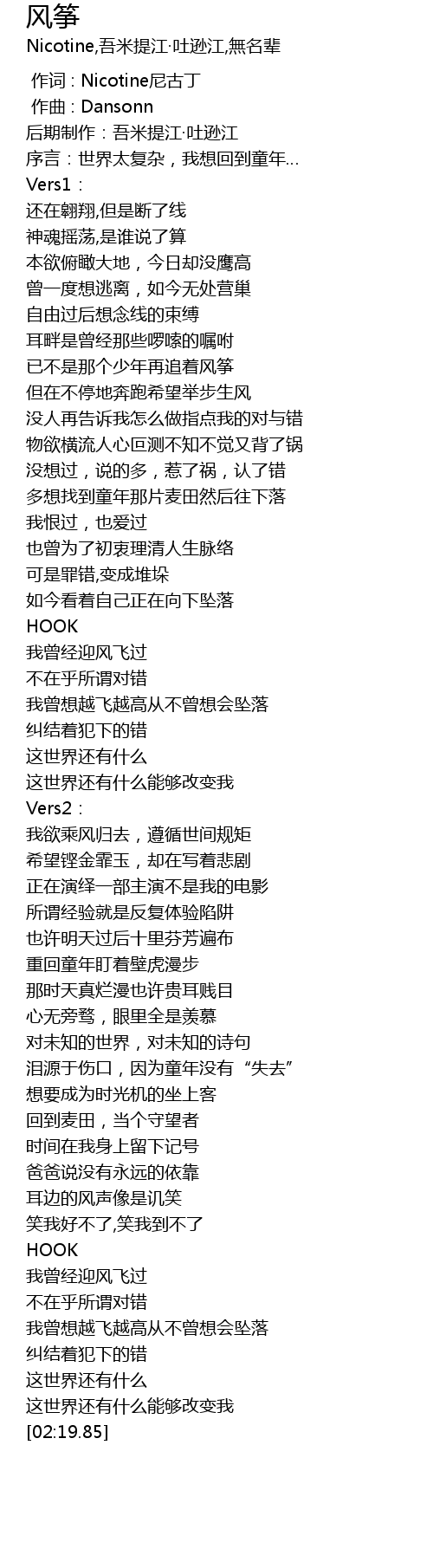 | [00:00.000] | 作词 : Nicotine尼古丁 |