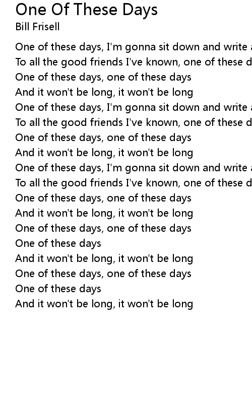 One of these days, one of these days |