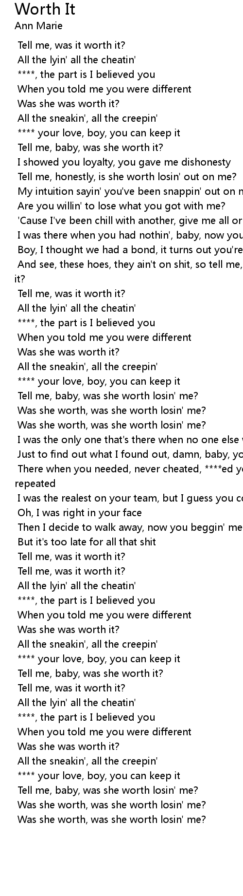 And see, these hoes, they ain't on shit, so tell me, was it worth it? |
