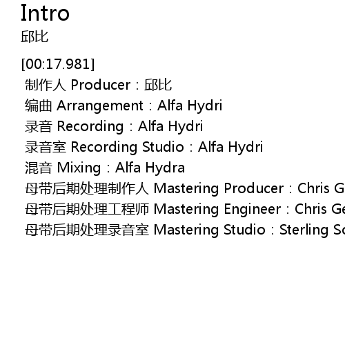 | [00:32.892] | 母带后期处理录音室 Mastering Studio:Sterling Sound |