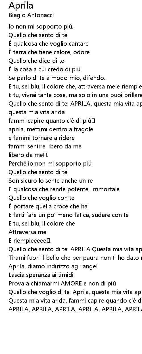 | Quello che sento di te: APRILA, questa mia vita aprila, | |