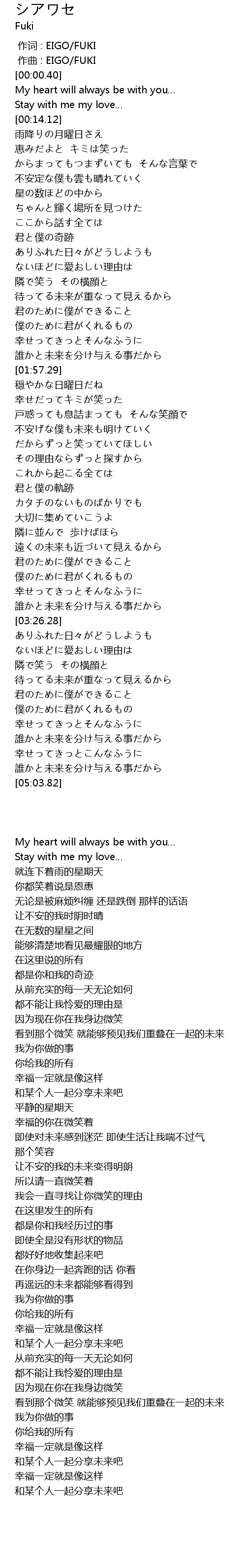 | [00:00.000] | zuò cí : EIGO FUKI |