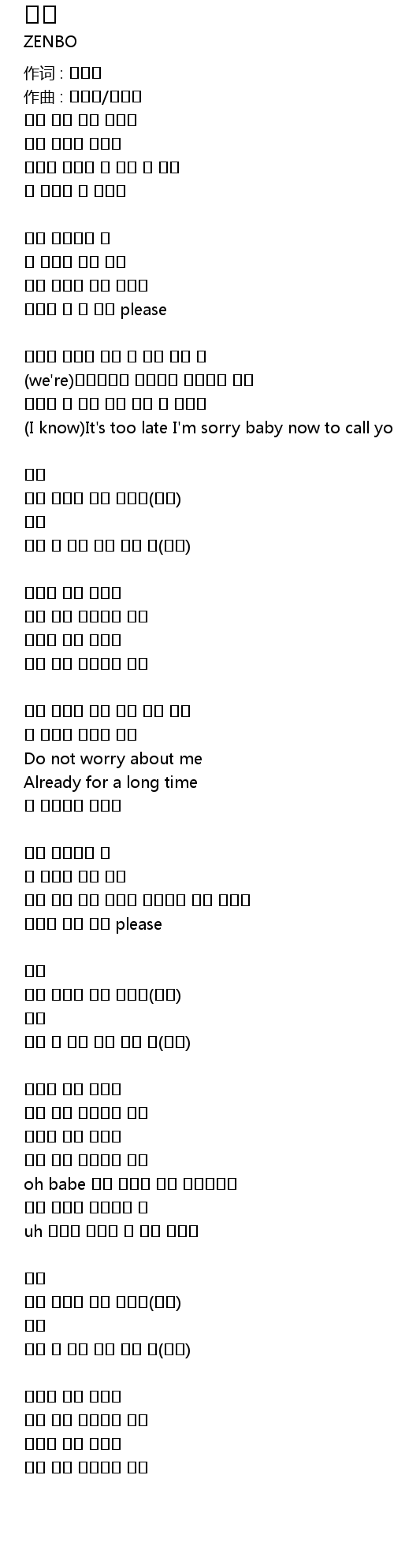 | I know It' s too late I' m sorry baby now to call you baby | |