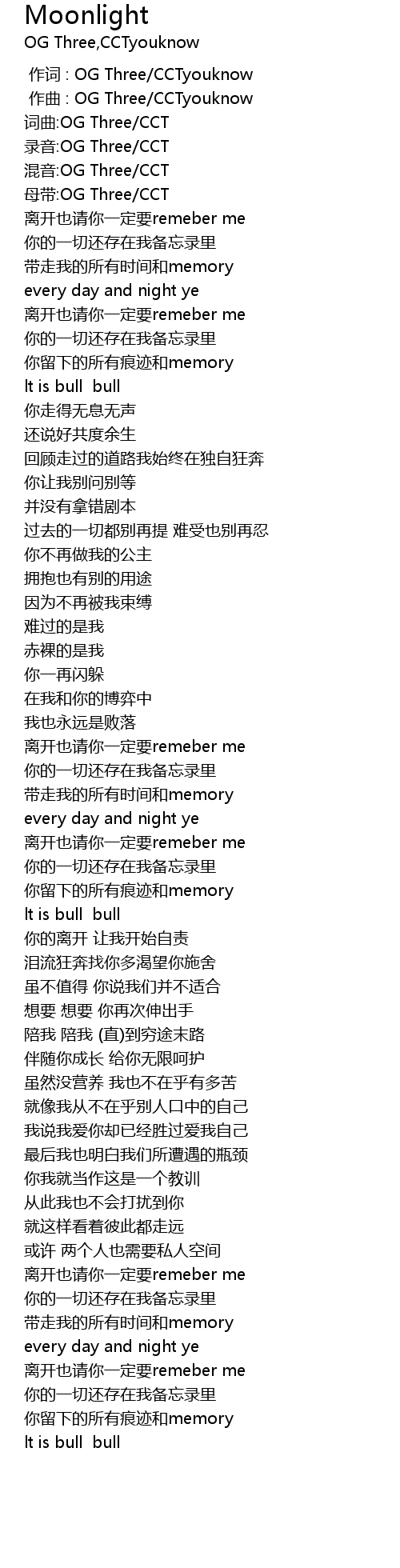 | [00:00.000] | 作词 : OG Three/CCTyouknow |
