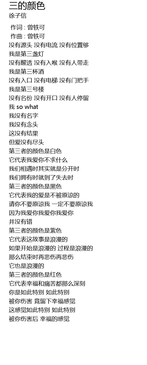 | [04:22.122] | dì sān zhě de yán sè shì zǐ sè |
