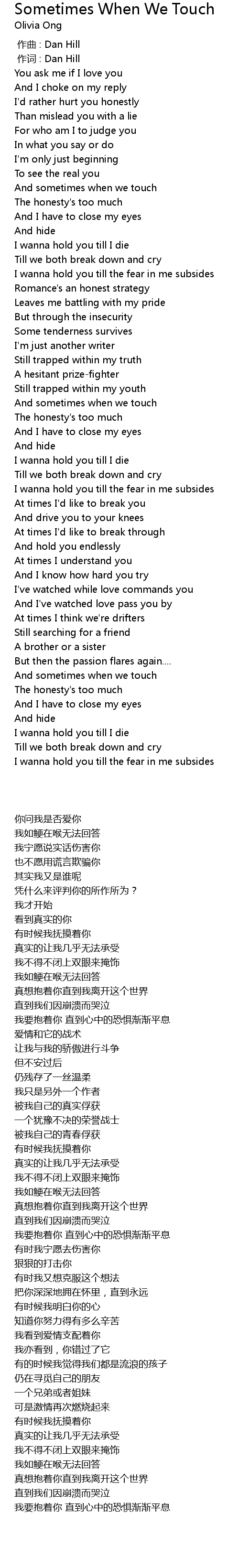 | [02:19.690] | I wanna hold you till the fear in me subsides |