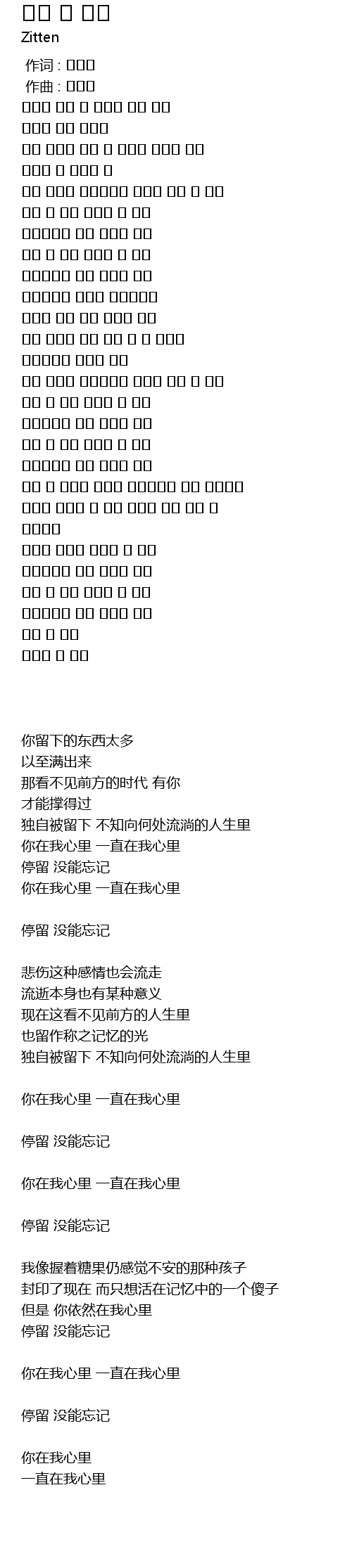 | [02:30.353] | 머물러있어 잊지 못하고 있어 |
