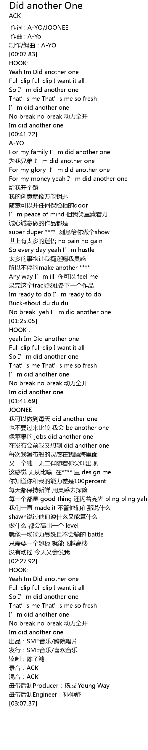 | [03:06.24] | 混音:ACK |