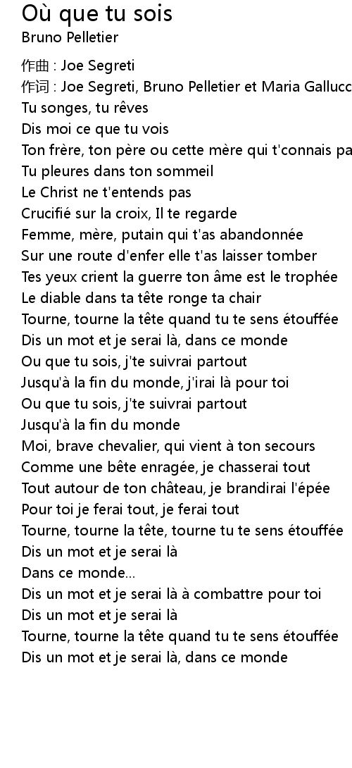| 作词 : Joe Segreti, Bruno Pelletier et Maria Gallucci | |