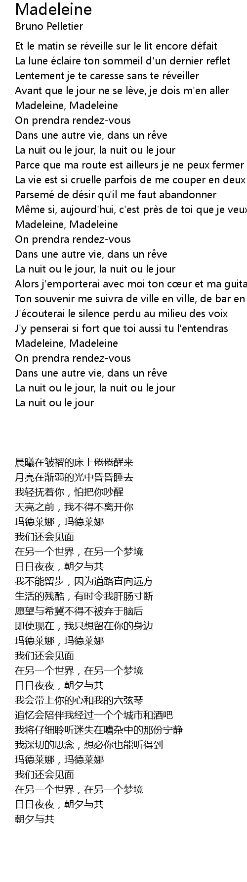 | [00:24.100] | La lune e claire ton sommeil d' un dernier reflet |