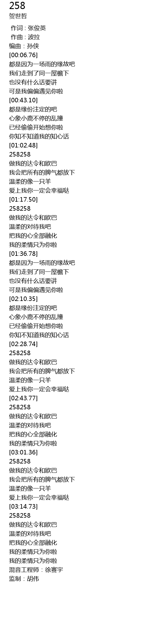 | [03:35.70] | 混音工程师:徐赛宇 |