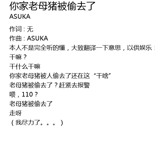 | nǐ jiā lǎo mǔ zhū bèi rén tōu qù le hái zài zhè" gàn shà" | |
