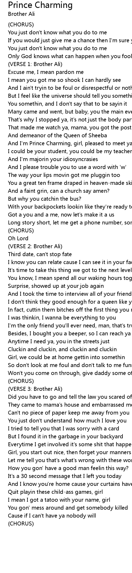 And I'm Prince Charming, girl, pleased to meet ya |