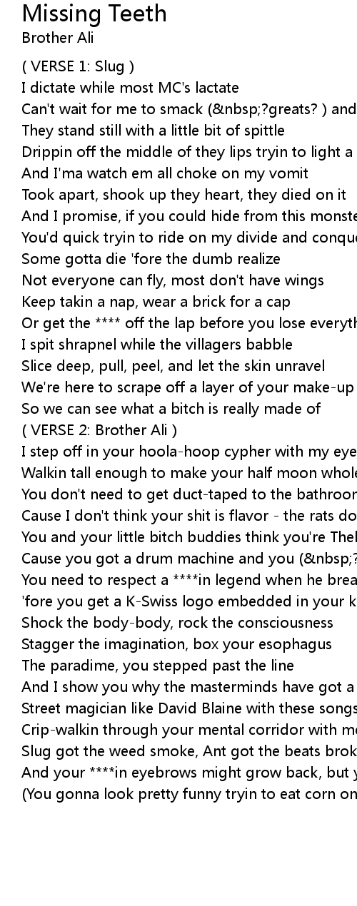 (You gonna look pretty funny tryin to eat corn on a cob with no ****in teeth) |