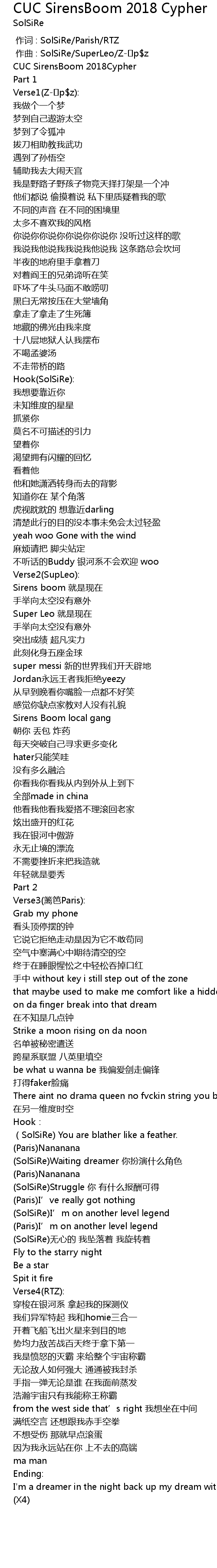 | Song | CUC SirensBoom 2018 Cypher |