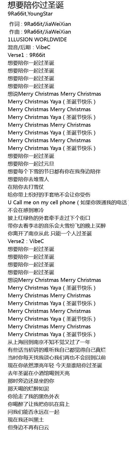 | [01:46.105] | Merry Christmas Yaya shèng dàn jié kuài lè |