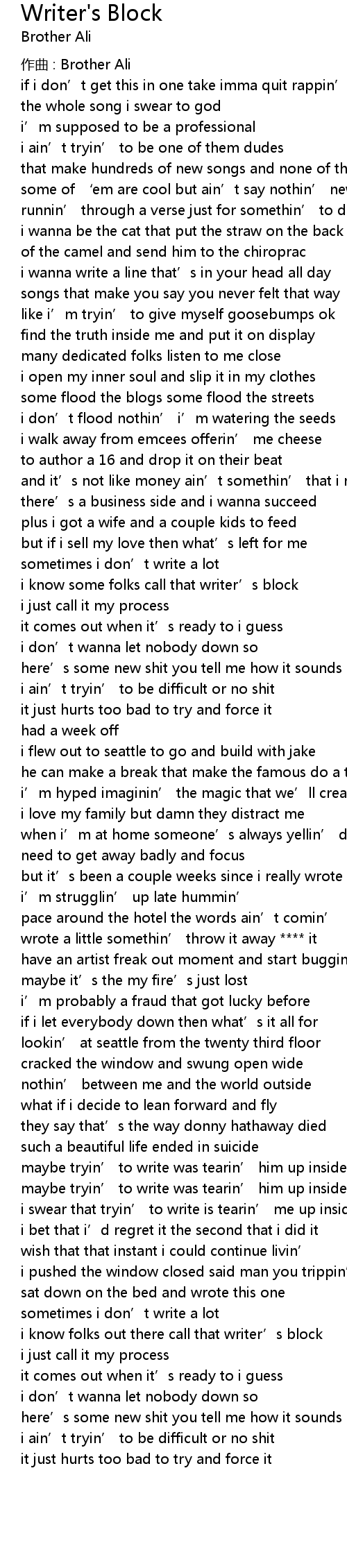 | i swear that tryin’ to write is tearin’ me up inside | |