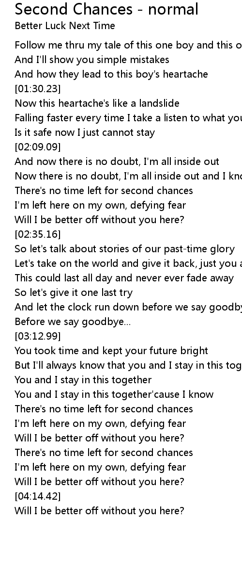 There's no time left for second chances |