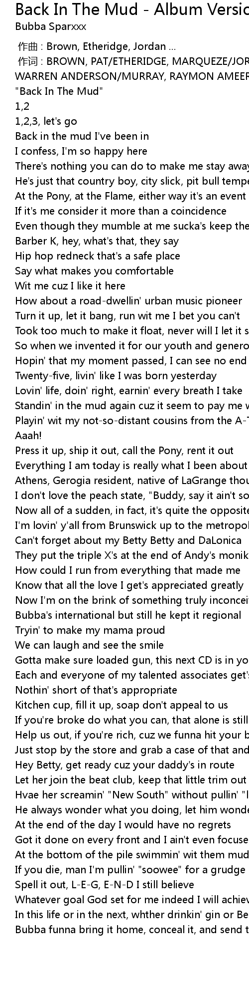 | [00:01.37] | " Back In The Mud" |