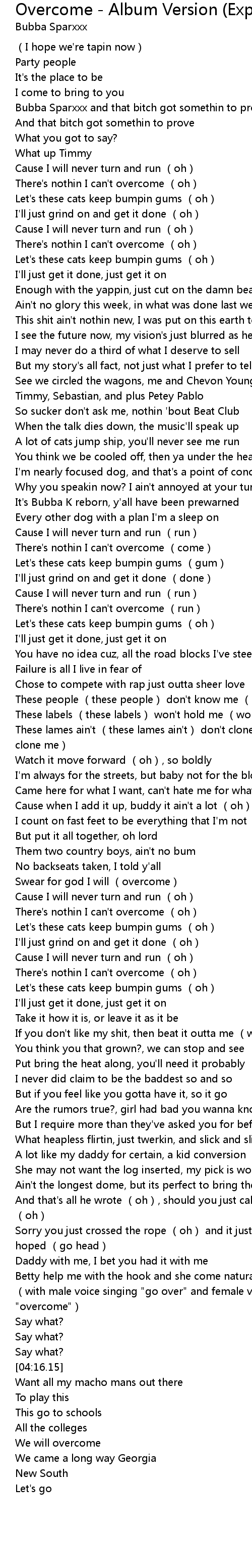 | [03:36.73] | with male voice singing " go over" and female voice singing " oh" and " overcome" |