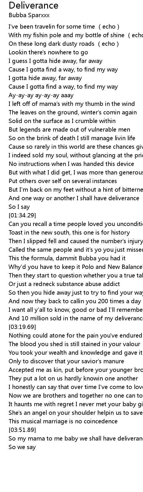 | [03:53.62] | So my mama to me baby we shall have deliverance |