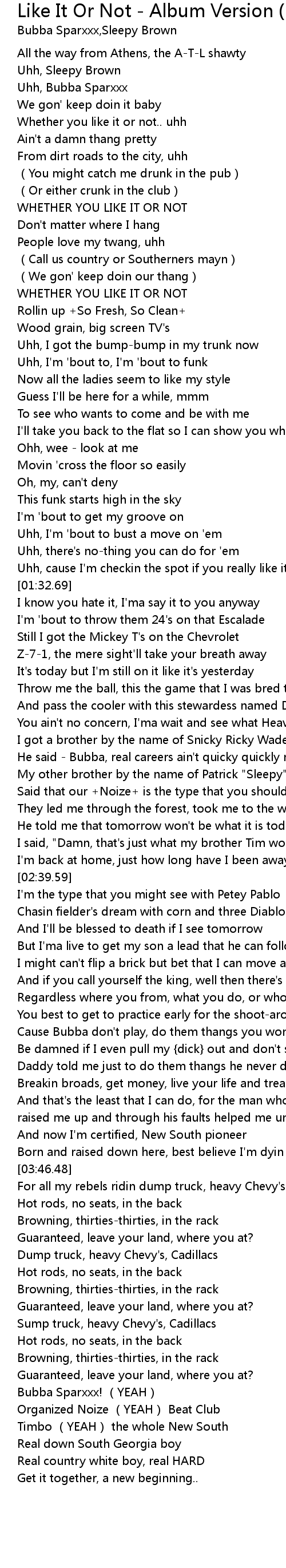 | [03:24.95] | Cause Bubba don't play, do them thangs you won't say |