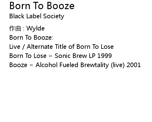 | Booze = Alcohol Fueled Brewtality (live) 2001 |