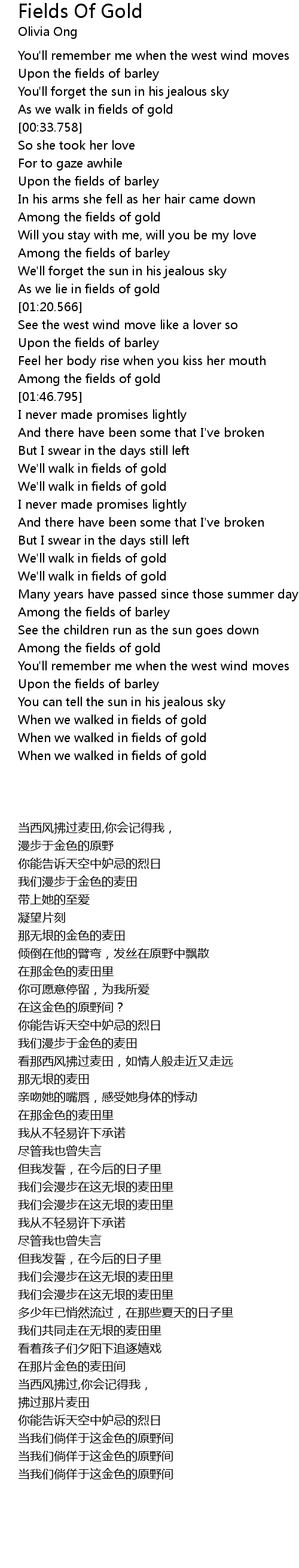 As we lie in fields of gold |