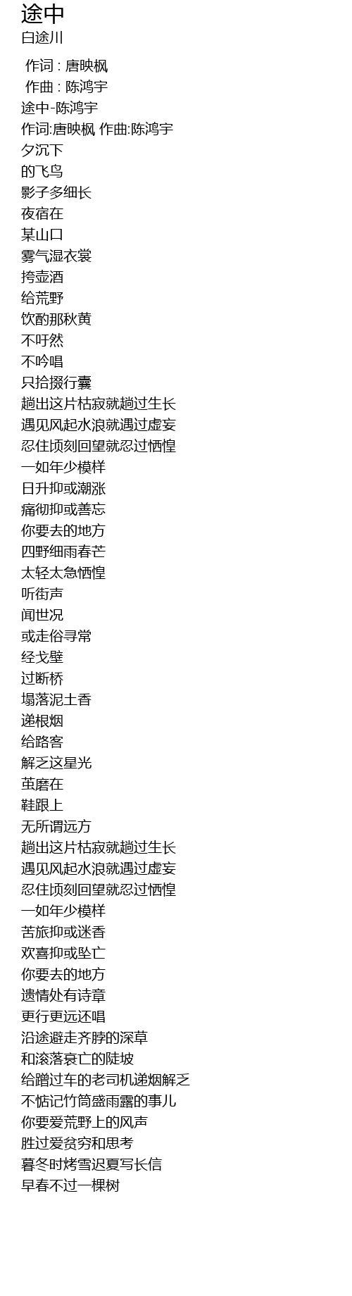 | [00:01.943] | 途中-陈鸿宇 |
