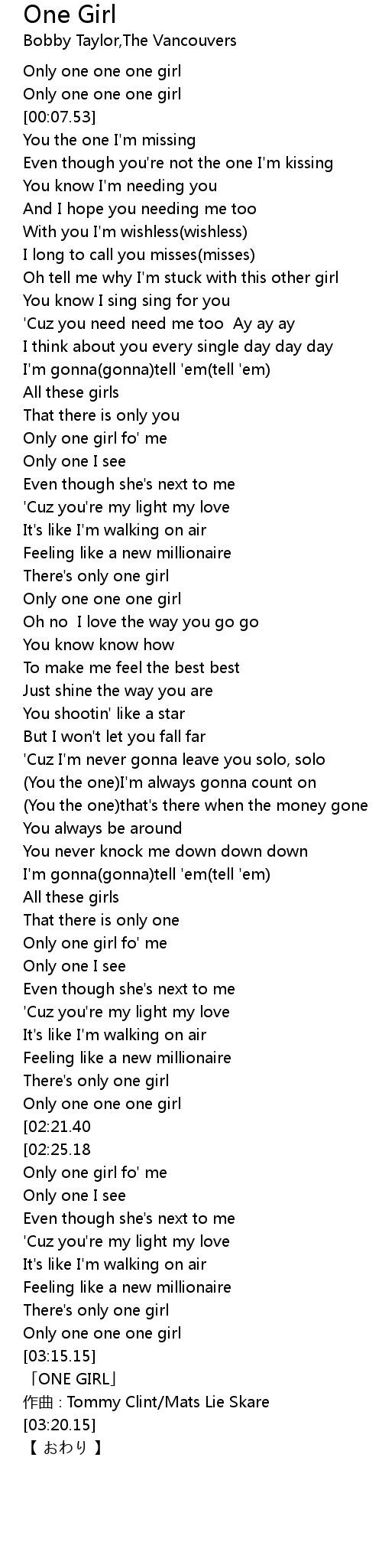 | [00:05.15] | Only one one one girl |