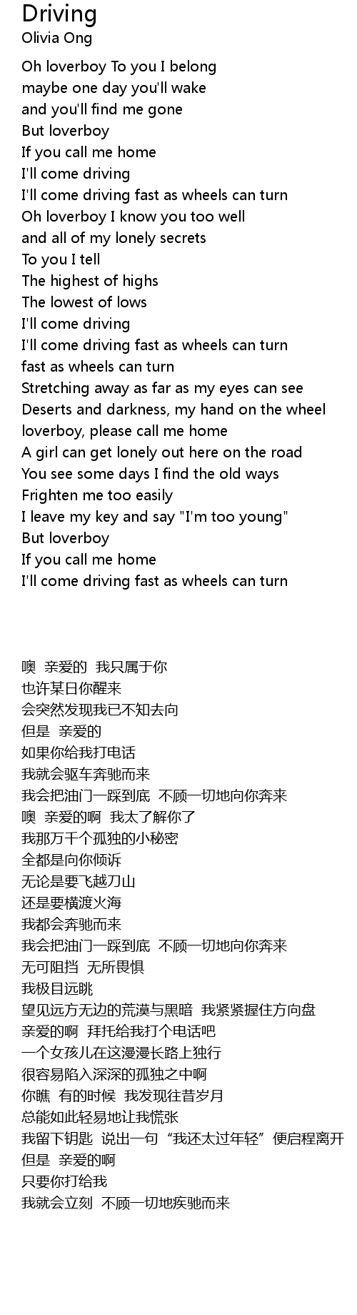 | [01:01.180] | I'll come driving |