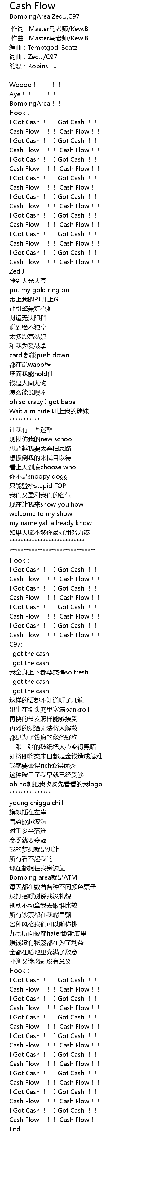| [01:33.046] | I Got Cash !!I Got Cash !! |