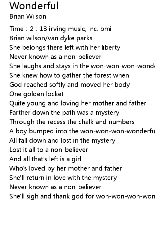| She' ll sigh and thank god for wonwonwonwonderful |