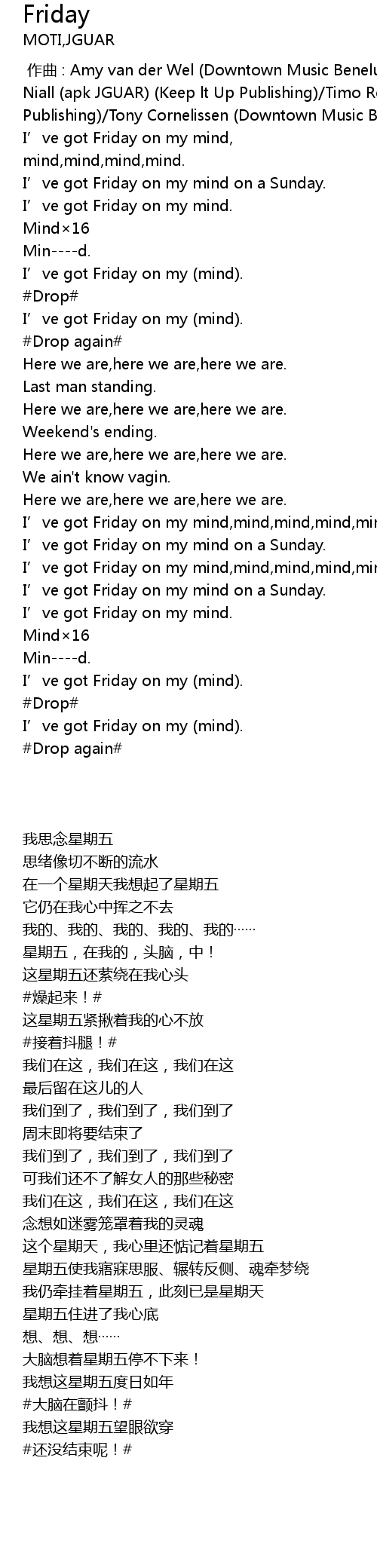 | [01:14:700] | I’ve got Friday on my mind,mind,mind,mind,mind. |