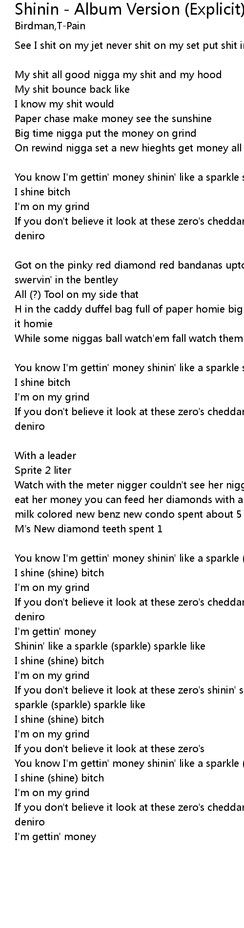 | If you don't believe it look at these zero's shinin' shinin' shinin' like a sparkle (sparkle) sparkle like | |