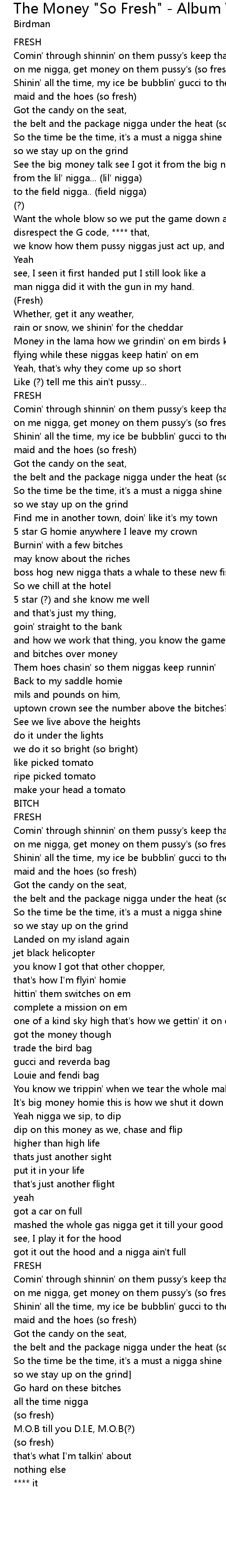 on me nigga, get money on them pussy's (so fresh) |