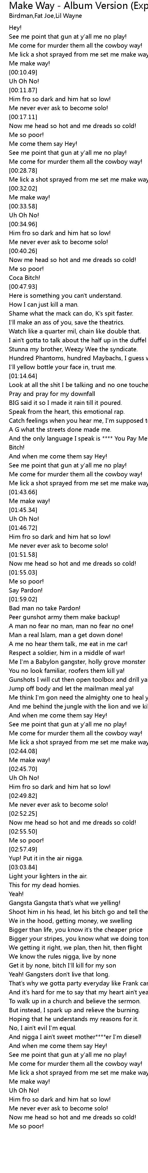 | [02:58.18] | Yup! Put it in the air nigga. |