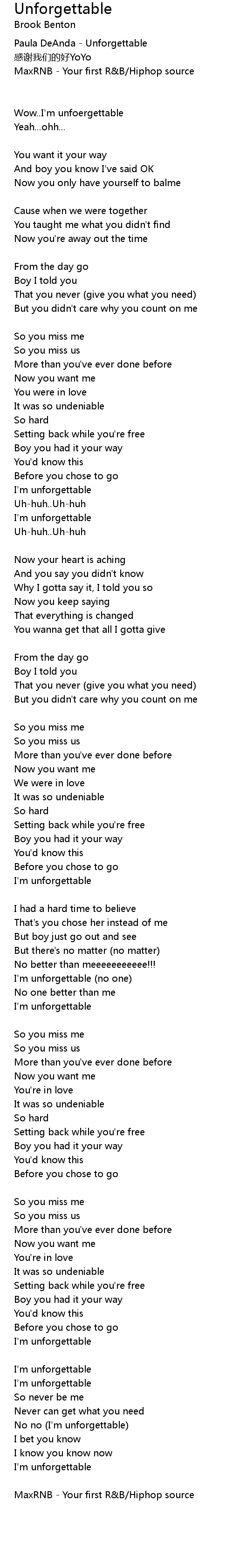 | No no I' m unforgettable | |