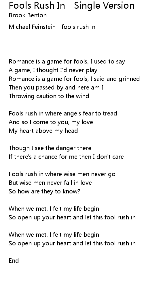 Fools rush in where wise men never go |