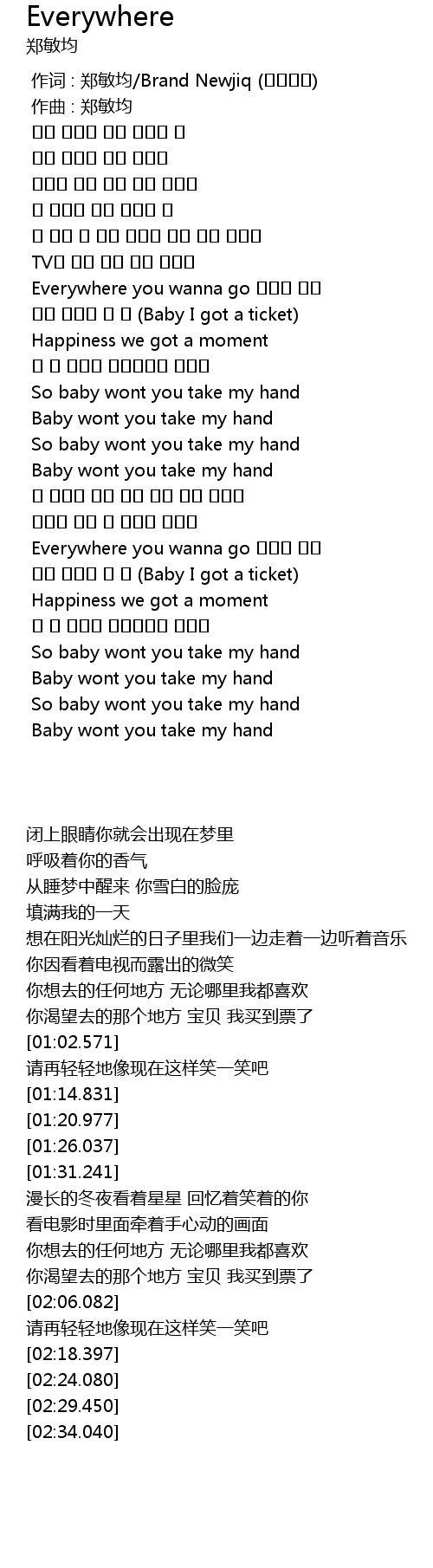 | [01:54.697] | Everywhere you wanna go 어디든 좋아 |
