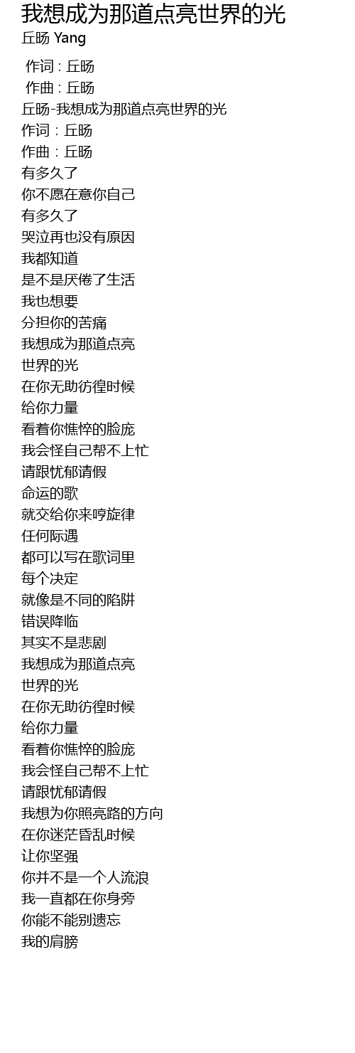 | [00:00.70] | 丘旸-我想成为那道点亮世界的光 |