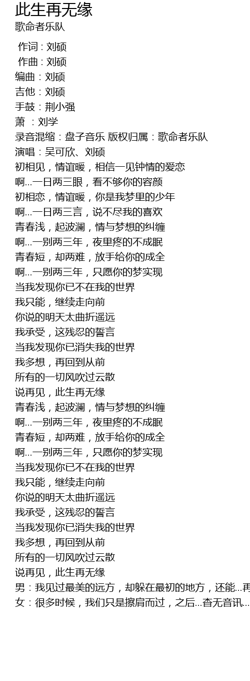 | [04:41.84] | shuo zai jian, ci sheng zai wu yuan |