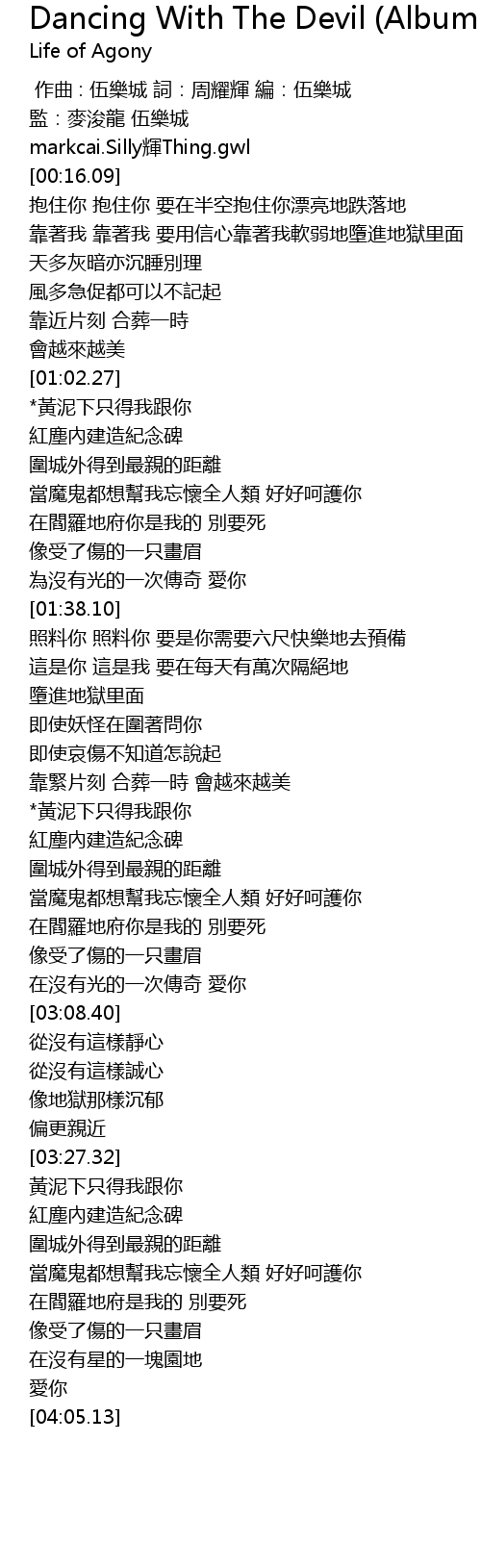 | [02:53.37] | 在閻羅地府你是我的 別要死 |