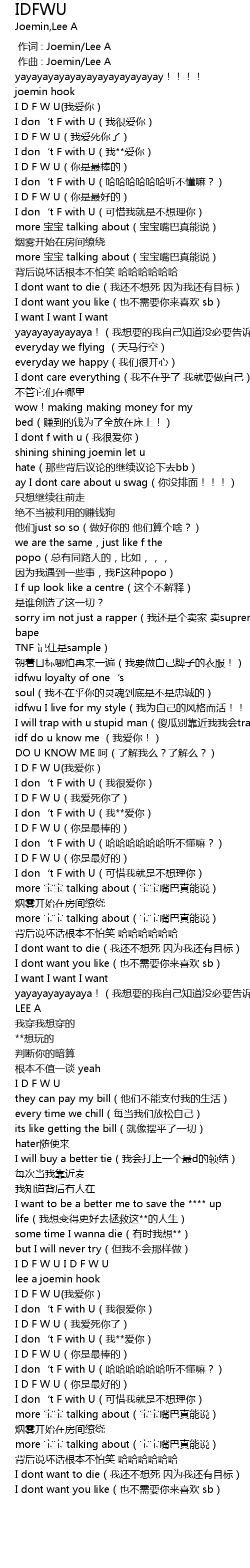 | [01:51.857] | I don‘t F with U(哈哈哈哈哈哈听不懂嘛?) |