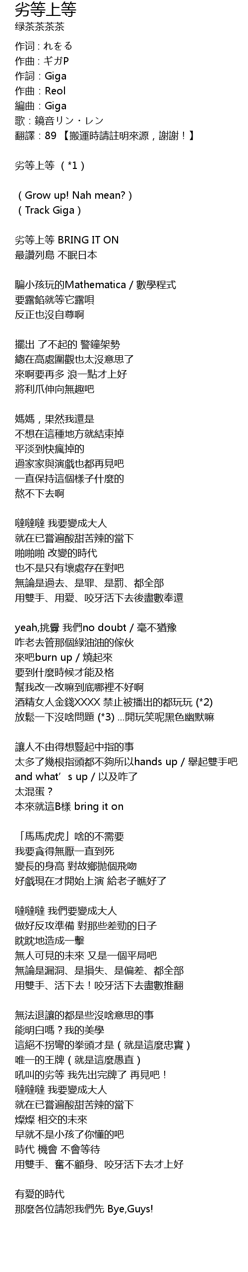 | 作詞:Giga | |