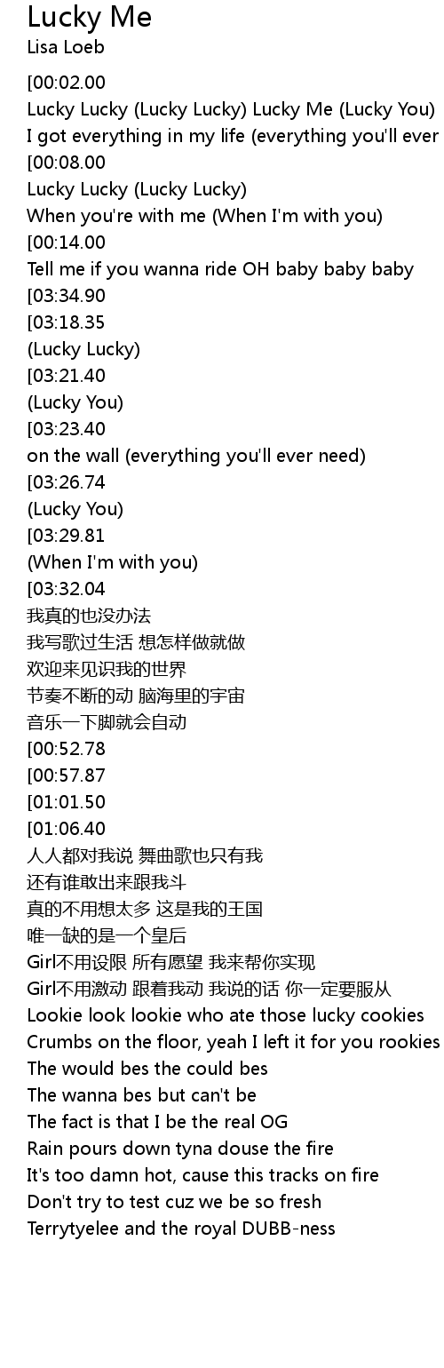 | [00:02.10] | Lucky Lucky Lucky Lucky Lucky Me Lucky You |
